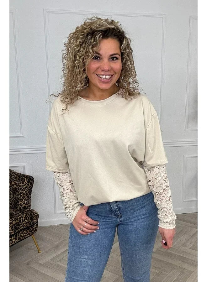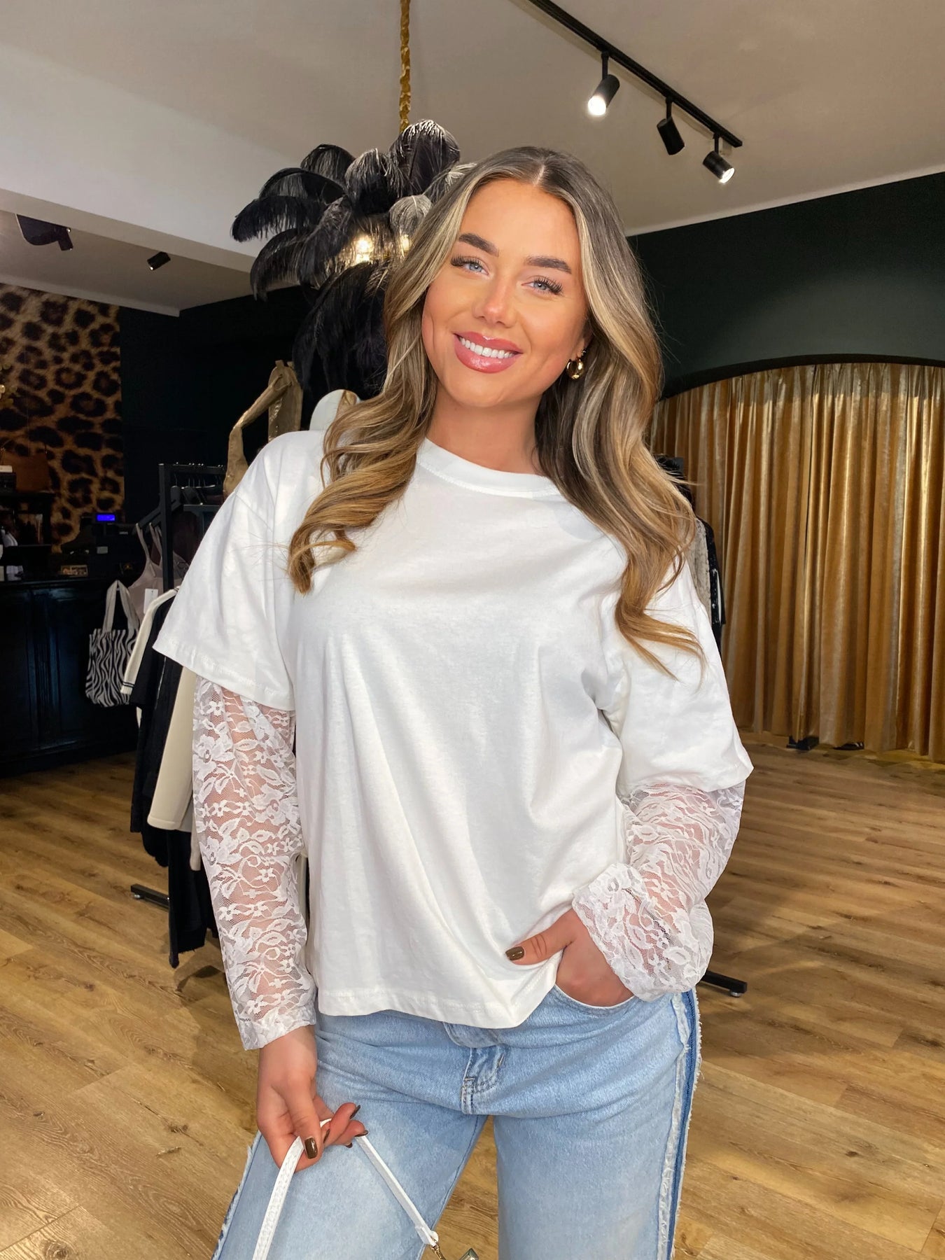 ✅ Chic & versatile – elegant lace sleeve detailing transforms a simple tee into an outfit-ready statement piece.